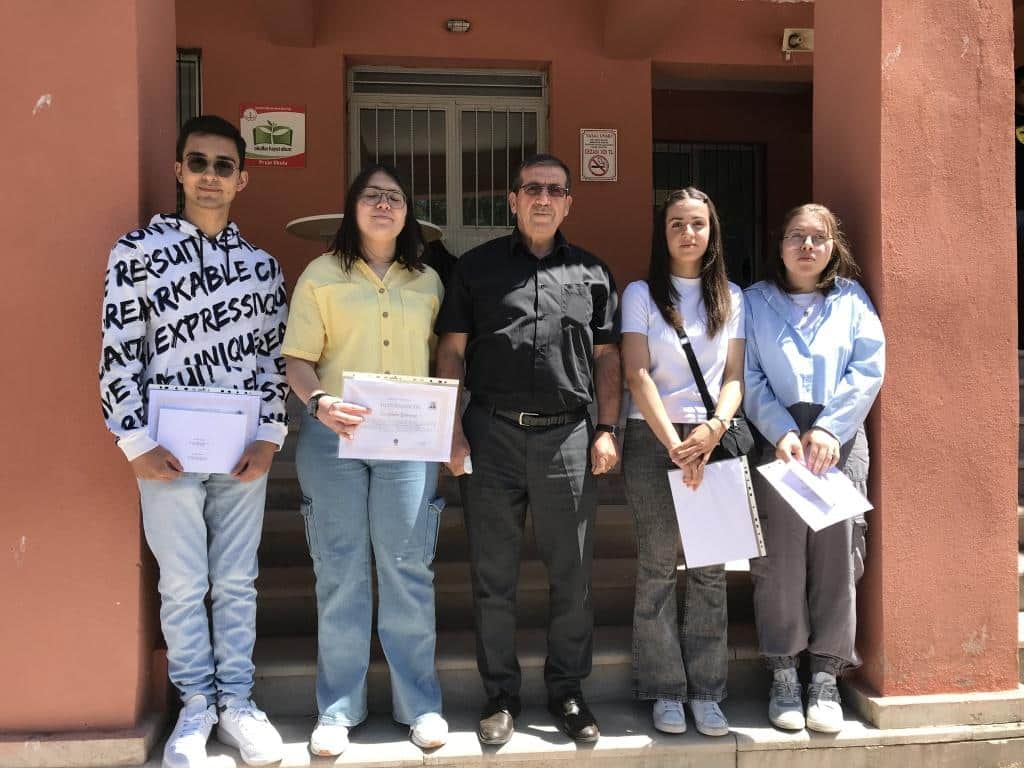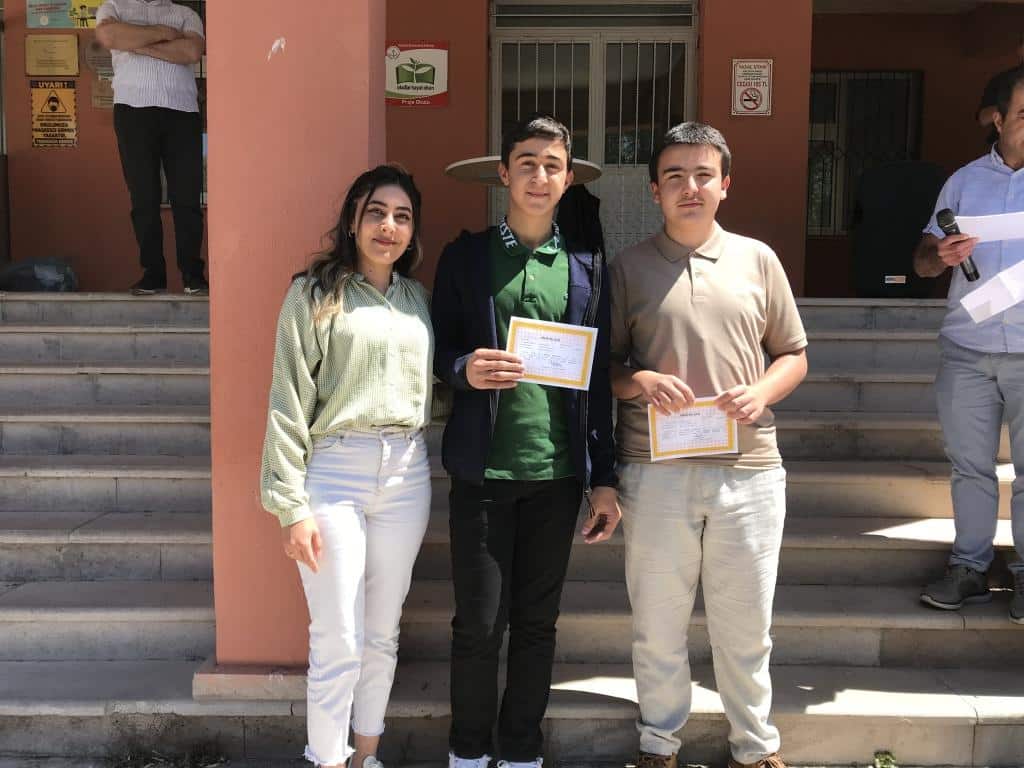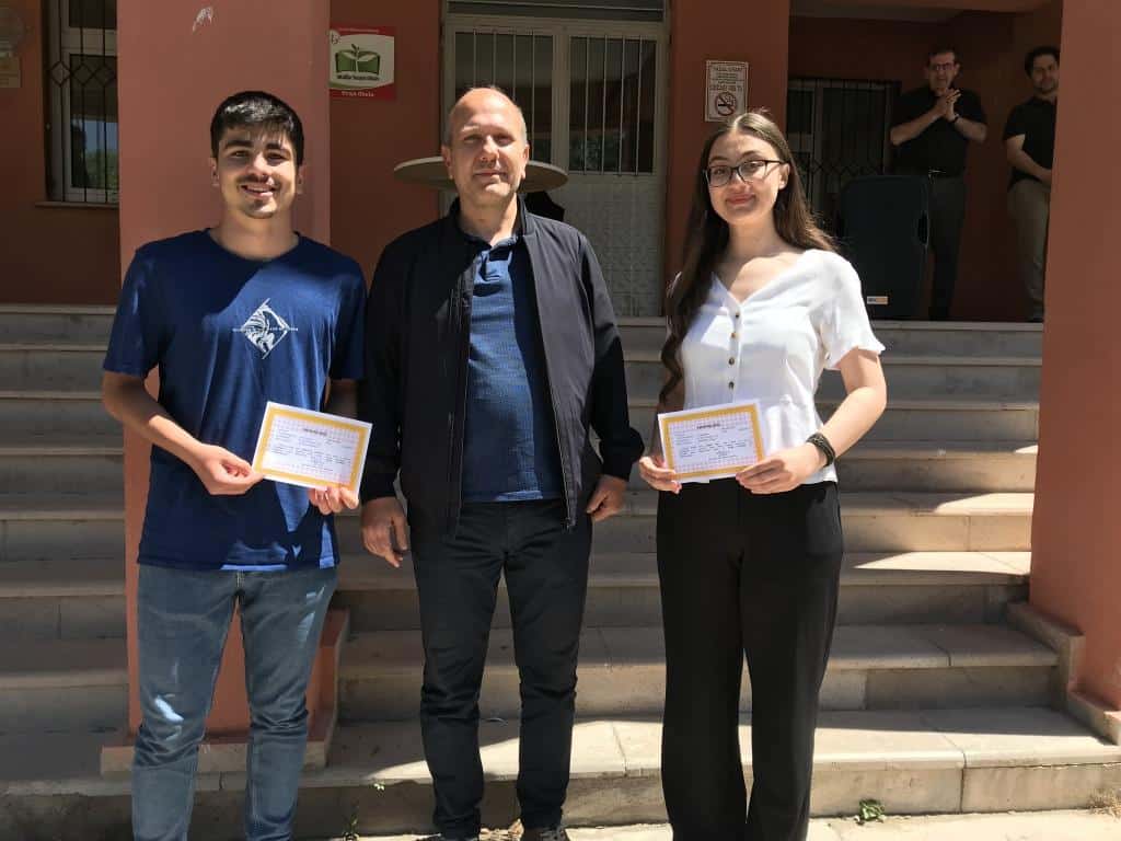 "Yılın Öğrencisi" olarak başarı belgelerini okul idaresinin elinden aldılar.