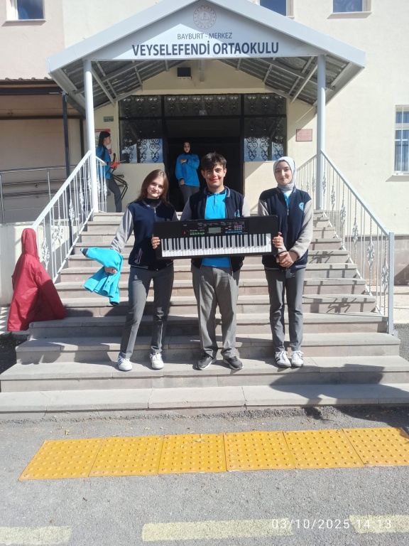 Okulumuz Kütüphanecilik Kulübü öğrencileri tarafından Kulüp rehber öğretmeni eşliğinde 03.10.2025 Cuma günü 13.00-14.30 saatleri arasında Bayburt Veysel Efendi Ortaokuluna Sosyal Sorumluluk Projesi Toplum Hizmeti çalışmaları kapsamında özel öğrencilerle etkinlik yapmak amacıyla bir ziyaret düzenlendi. Müzik eğlence, yüz boyama, balon şişirme gibi bir dizi etkinlik yapıldı. Öğrencilere çeşitli hediyeler verildi. Öğrencilerle hatıra fotoğrafı çekilen ekip okul idaresine ve öğretmenlerine teşekkür ederek okuldan ayrıldı.
